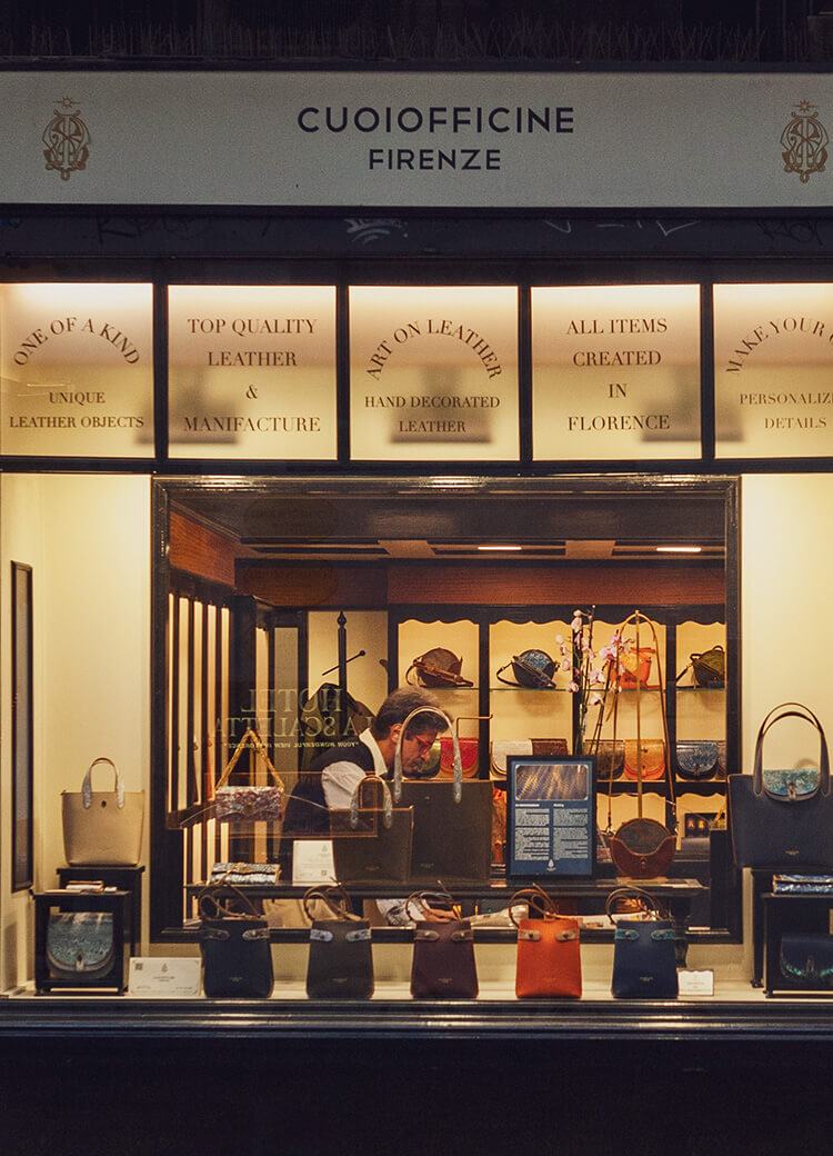 Every product is displayed with care and attention to detail. Here, one can admire the entire Cuoiofficine collection, from artisanal leather goods to marbled creations, offering a wide range of options for lovers of elegance.